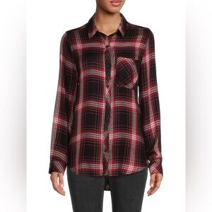 Casacabana plaid shirt in red and black. Features a classic collar and button-up front.