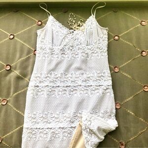 Casadei Dress Slip Vintage Y2K in Ivory and Beige Lace (~S)