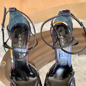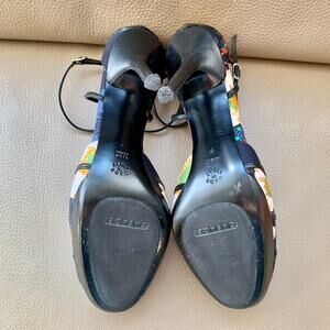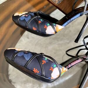 Casadei Floral Print and Leather Trim Evening Shoes Size 7.