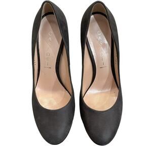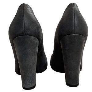 Casadei Gunmetal Gray Textured Block Heel Italian Leather Pumps Size 8.5
