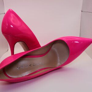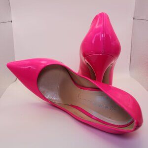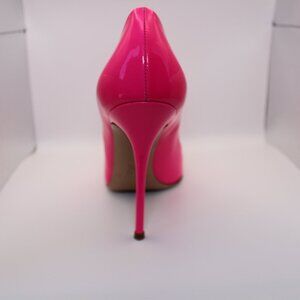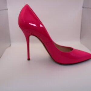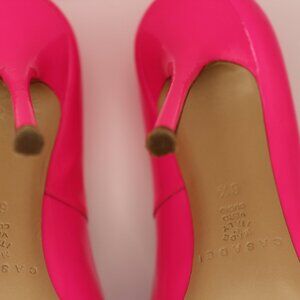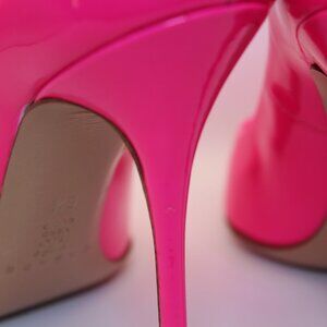 I have these pair of Neon/Pink Casadei high heels, Size is 6 1/2 (6.5), they are slightly worn as you can see in the pictures, There is a little tear on the left heel as you can see in the pictures, Then there is a 2 black/purple marks on the back side of the right heel as you can see in the pictures. The bottom of the shoes shows some wear on them, but they still have a lot of life left in them.