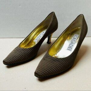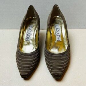 CASADEI Pumps Gold Semi Pointy Toe Formal Work Careerwear Made In Italy