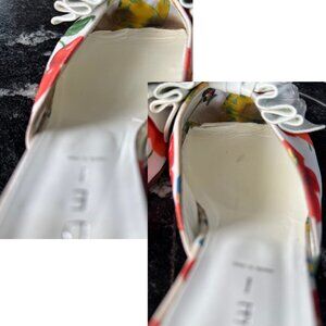 Casadei White Retro Mule Women's Sz 6.5 Canvas Floral Classic Open-Toe Sandal Heels