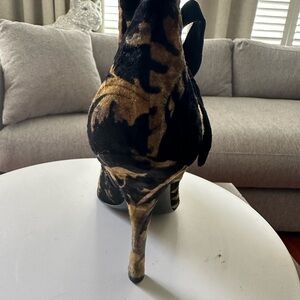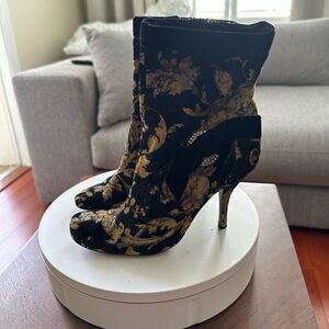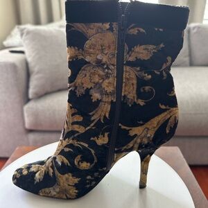 Casadei Velvet Boots Round Toe Size 7.5 Made In Italy 3.5” Heel
