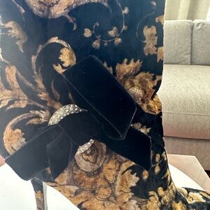Preowned Casadei Velvet Boots Round Toe Size 7.5 Made In Italy 3.5” Heel