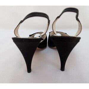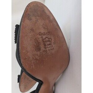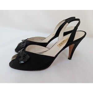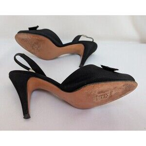 Casadei Woman's Shoes Sz 7 1/2 Black Leather Satin with Sequin Bow Sling Back
