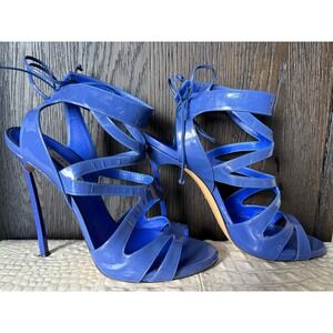 Casadei Women Blue Patent Leather Gladiator Lace Up Stiletto Heels 9.5 B Italy