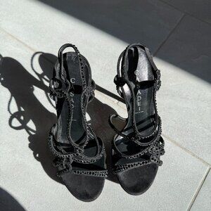 The most beautiful black suede and crystal Casadei platform heel sandals size 37B.