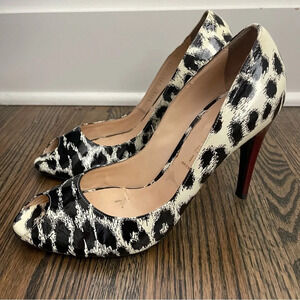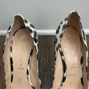 Casadei patent leather peep toe animal print stiletto heels made in Italy s10