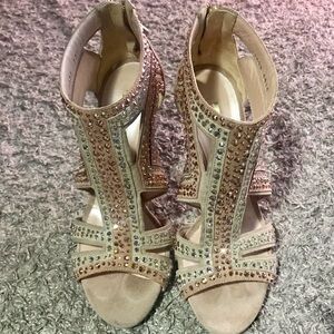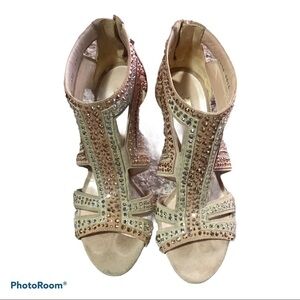 Casadei womens open toe leather heels size 7 Rhinestones