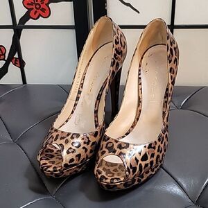 Casadei Leopard Print Patent Leathe Peep Toe Pumps Size 9.5