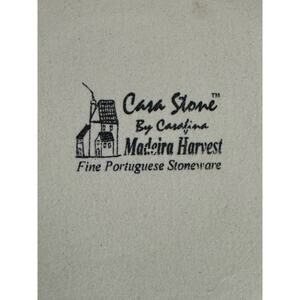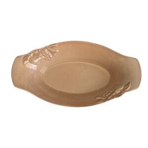Excellent preowned vintage condition this Casa Stone by Casafina serving bowl in Madeira Harvest design and smoked salmon color was made in Portugal. 10” x 5” x 2” high. Handles on either end with embossed fruit, apple, grapes, pear also at either end.