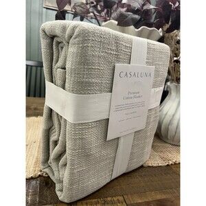 This listing is for a brand new Casaluna Full/Queen Cotton Slub Blanket in Light Olive Green.