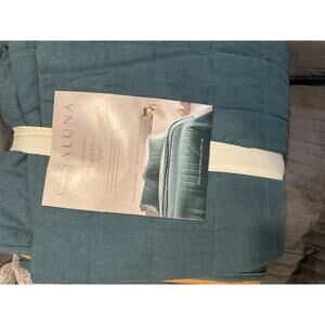 Casaluna Heavyweight Linen Blend Quilt - King size Teal new