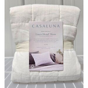 Casaluna Heavyweight Linen Blend Quilted White King Size Pillow Sham 20" x 36"
