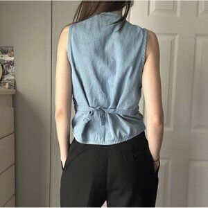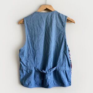 Cascade Blues Patchwork Woven Vest 90's Teachercore Crafty Unique Grannycore Med
