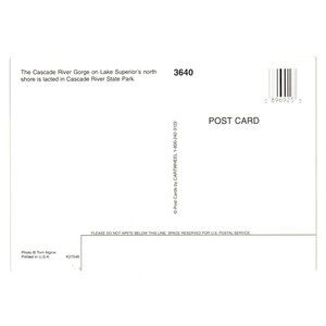 Showcases a stunning view of The Cascade River Gorge at Lake Superior. High-quality collectible postcard for enthusiasts or unique correspondence.