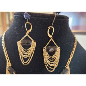 Cascading Gold And Onyx Vintage Necklace and Earrings FP China 1/20 14k