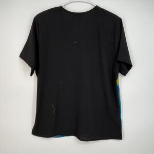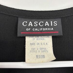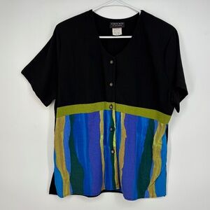 Cascais of California Womens Medium Vintage Blouse Black Green Blue Stripes SS