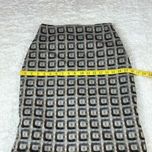 Danish Designer Gro Abrahamsson created this Multicolor tiered Midi length mermaid ruffled pencil skirt. Geometric square contrast print tiers. Woven wool and fully lined. sage, black and grey. No stretch and no pockets, with hidden side zip closure and sassy 3 button decoration on back. Size 36 is closest to a US small, but please check against your own measurements to ensure a great fit.