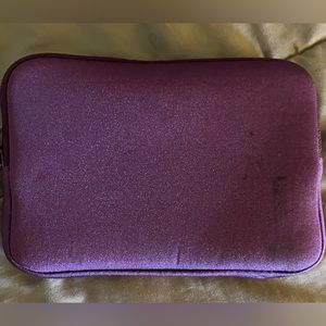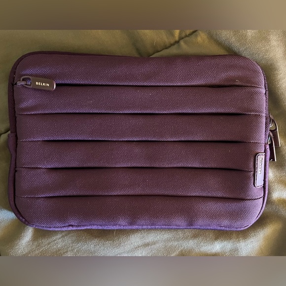 Vintage, pre-owned Belkin case. Purple in color. Soft fabric. Zip top closure. Zip pocket in the front. Can fit small electronics or cables. Please note some markings on the back and the 2 zipper pulls are broken on the metal. Measures 7.5” x 5. 1/8”. Sold as is, please view all photos as they are part of the description before purchasing.