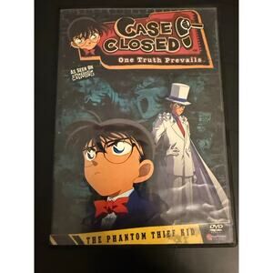 Uncover the mystery with Case Closed: The Phantom Thief Kid, part of the One Truth Prevails DVD collection from Funimation. Follow Conan as he faces off against the elusive Phantom Thief, a master criminal who steals priceless jewels and vanishes without a trace. Includes four full episodes (Phantom Thief 1412 Part 1 & 2, Mysterious Masked Murder Part 1 & 2), dual-language audio (English & Japanese), and extras like character profiles, Conan’s gadgets, and trailers. Original case and insert included, disc clean and fully tested. Great for Detective Conan collectors and nostalgic anime fans!