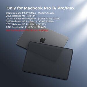 Check Your Model: Designed exclusively for MacBook Pro 14-inch (2026 2025–2021, M5 / M4 / M3 / M2 / M1 Pro/Max) models (A3434 / A3112 / A3185 / A3401 / A2918 / A2992 / A2779 / A2442). Precision-molded to fit snugly without gaps or bulk, ensuring the lid closes smoothly and all ports remain fully accessible. Please confirm your model number before purchase