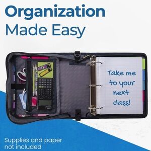 Case It Mighty Zip Tab 3 Inch Zipper Ring Binder with Expanding File 600 Sheets