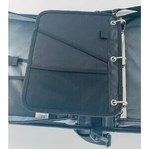 "Case It Mighty Zip Tab 3" Zipper Binder in blue, white, and black, featuring two 3-ring binders, secure zipper closure, and a convenient shoulder strap. Designed for maximum organization with extra pockets for storage, this pre-loved binder is in good used condition. Perfect for school, work, or home use!"