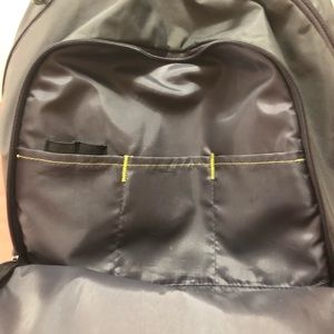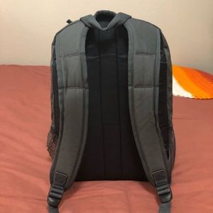 Well-used, high quality backpack that has lots of trips/commutes left in it! 14-inch laptop case built in. Price reflects the torn mesh side pockets and snags on the front. Inside is clean and in excellent condition!