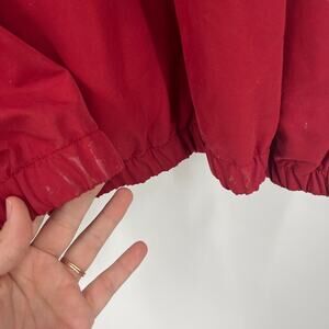 Case popover light weight jacket in dark red / burgundy, popover top, long sleeve, no lining. Men's size large new with tags, top has light white discoloration on bottom back as pictured.