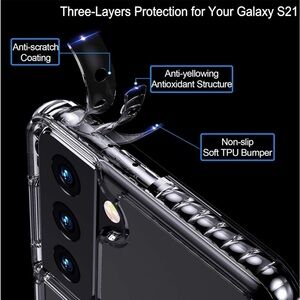 Case Compatible with Samsung Galaxy S21 6.2 Inch, Anti-Yellowing Military Grade Drop Protective Slim Thin Hard PC Back with Soft TPU Silicone Bumper (Clear)