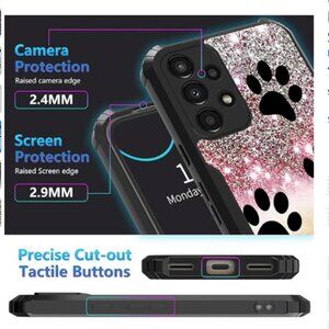 Case for Samsung Galaxy A32 5G Phone Case, Stand Kickstand Case Shock-Absorbing Corners TPU Bumper Phone Case for Galaxy A32 5G 6.5", Black Dog Paw Sparkles