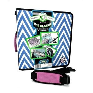 Case-It “The Classic” 2” Three Ring Binder Blue & White Chevron Pink 3 New NWT