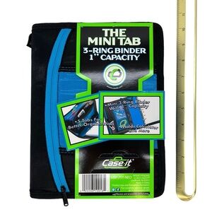 Case-It “The Mini Tab” Three Ring Zip Binder Blue & Black A3 5.5x8.5 80s New NWT