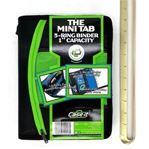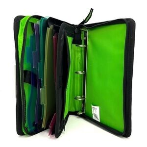 Case-It “The Mini Tab” Three Ring Zip Binder Green Black A3 5.5x8.5 80s New NWT
