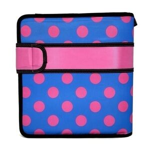Case-It “The Open Tab” 2” Three Ring Binder Blue with Pink Polka Dots New NWT