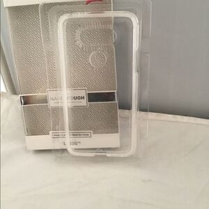 This clearly protective, dual-layered case offers a smooth transparent finish and ultra slim design. Its lightweight, minimalist design delivers a stylish profile, while the impact resistant hard shell and coordinating bumper protects against impacts and falls. Metallic chrome buttons accent and complete the polished look