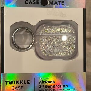 Dazzling glitter case for AirPods. Includes ring clip for easy carrying. Compatible with 3rd generation AirPods.
