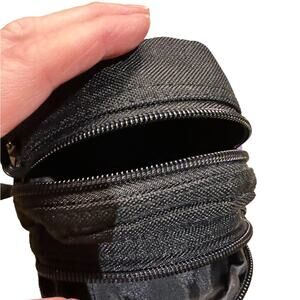 This is a great case from Caselogic for a small camera. Black fabric bag with zipped pouches and shoulder straps or belt strap. In excellent gently used condition.