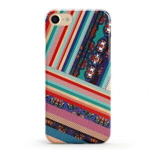 Unique colorful layered patchwork phone case with a glossy finish. This asymmetrical patchwork phone case featuring floral and geometric patterns is perfect for work or play.
