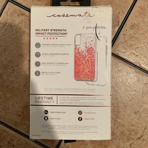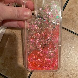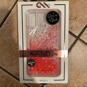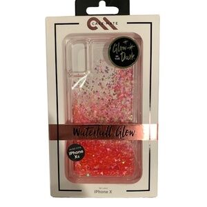 Casemate iPhone X/Xs Waterflor Glow Phone Case. Clear with cascading pink glitter. Glows in dark. Looks like the front piece of case