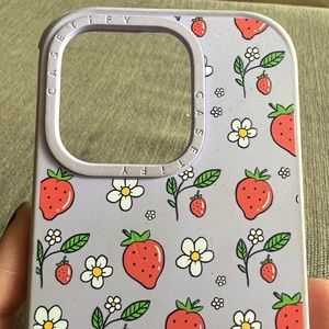 Casetify iPhone 14 Pro Case Mel Stringer Purple Strawberry Protective EUC