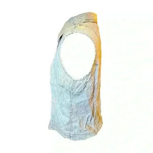 Add a touch of boho chic to your wardrobe with this vintage denim embroidered vest from Casey & Max. Featuring a floral pattern and button closure, this mid-length vest is perfect for travel, parties, or casual outings. The sleeveless design and lightweight fabric make it suitable for all seasons, from summer to fall to spring.