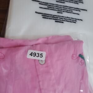 Casey Coleman Shirt Womens Medium Pink Linen Grasshopper Embroidered