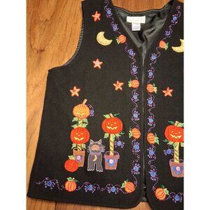 Casey Coleman 85% wool halloween vest, pumpkins, black cats, embroidered and button details. Size XL. Teachercore. Good condition. Thanks for looking!