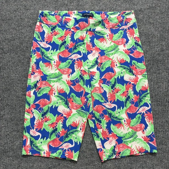Casey Key Womens Bermuda Shorts Large Multicolor Flamingo Print Pull On Mid Rise