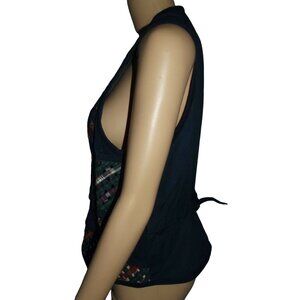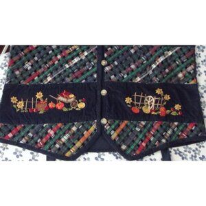 Casey & Max Vest Womens Medium Blue Pumpkin Autumn Fall Lattice Strip Embroidery