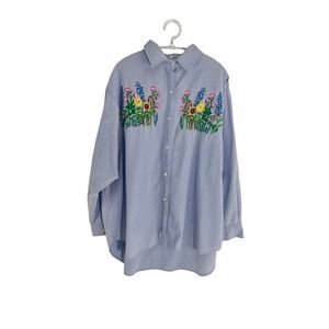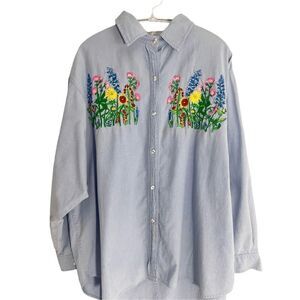 Casey colmen embroidered denim ling sleeve button up top x- large