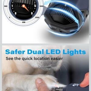 Casfuy electric pet nail grinder in navy. Features a USB charging cable and adjustable speed settings.